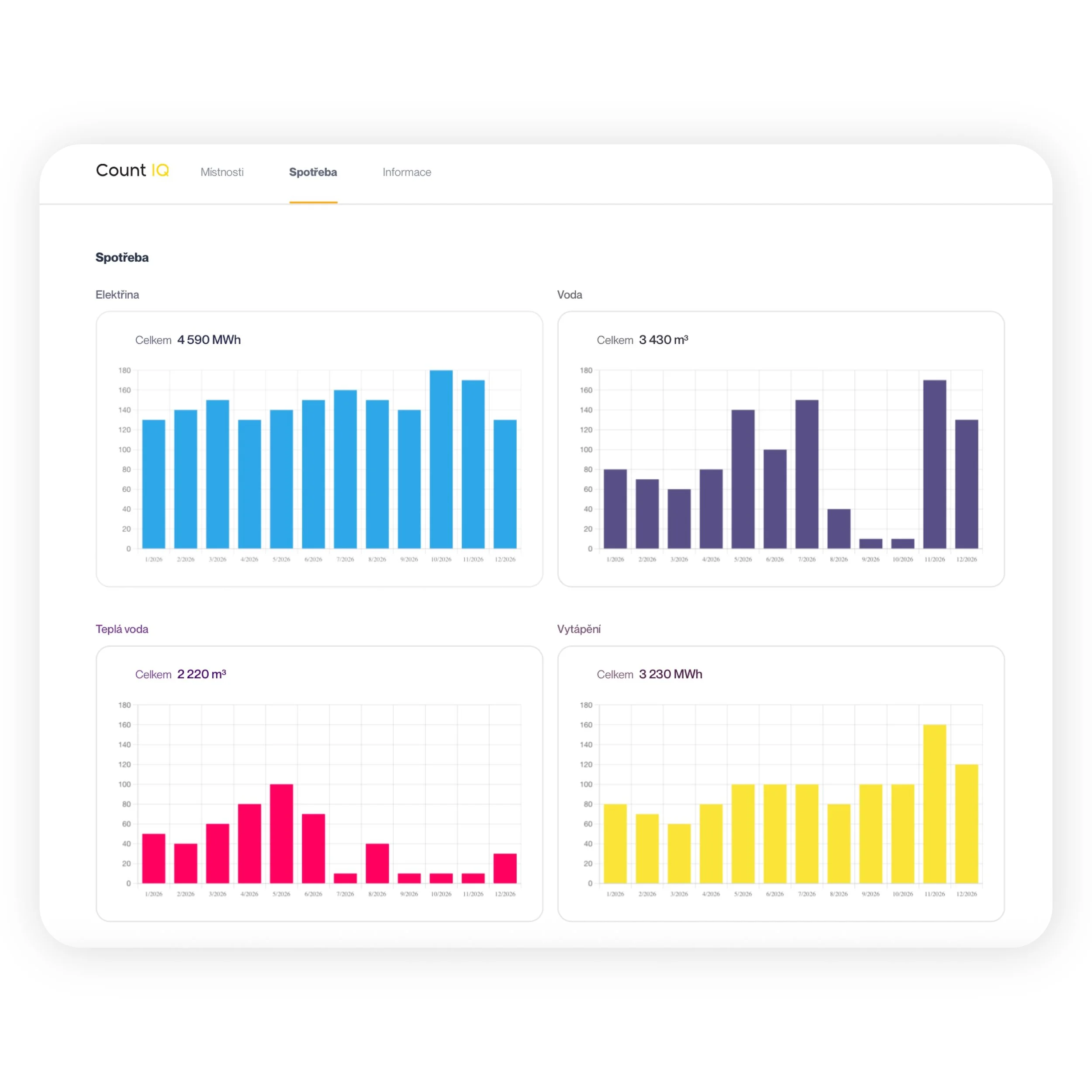 Dálkové odečty elektřiny, vody a tepla s okamžitým přehledem spotřeby a podklady pro rozúčtování.